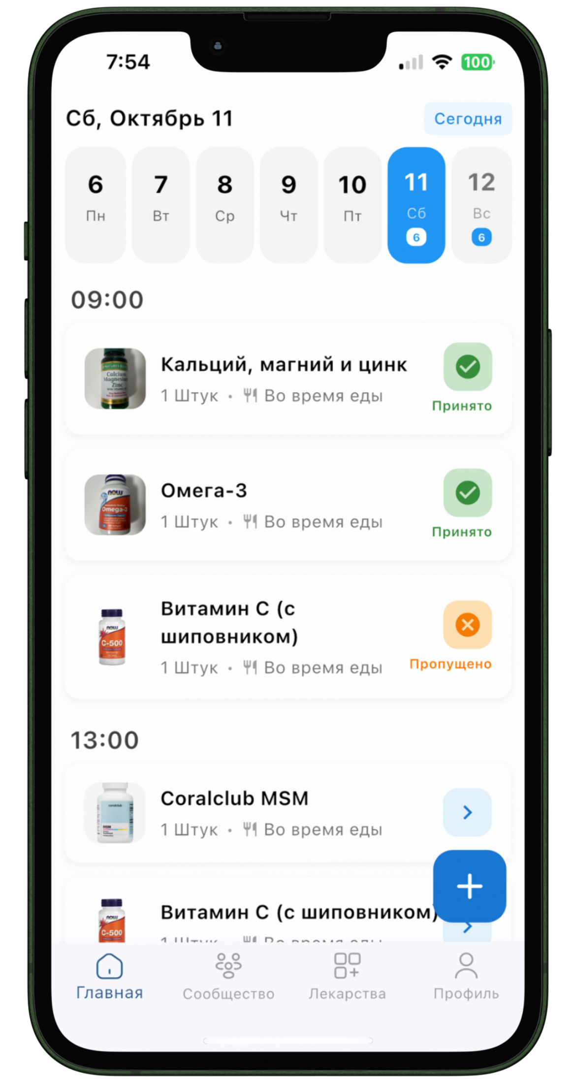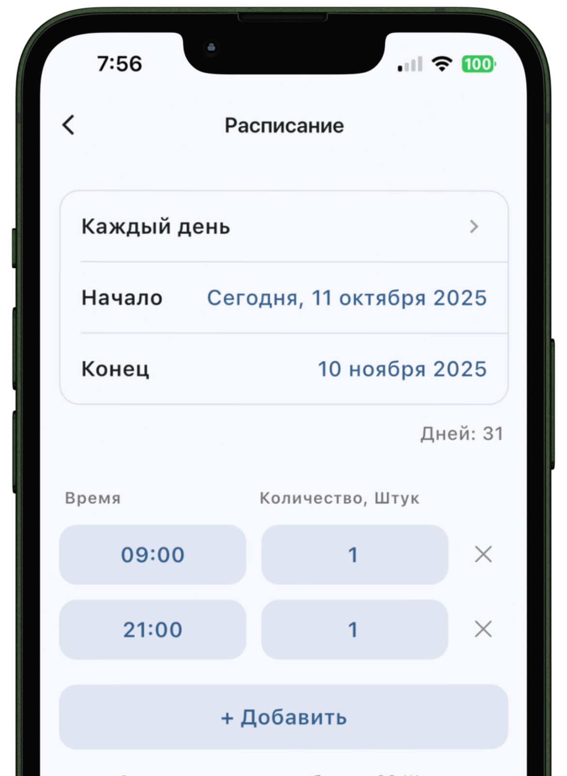 Управляйте приёмом препаратов с помощью гибких графиков, напоминаний и удобного календаря. Делитесь опытом с другими в форуме.